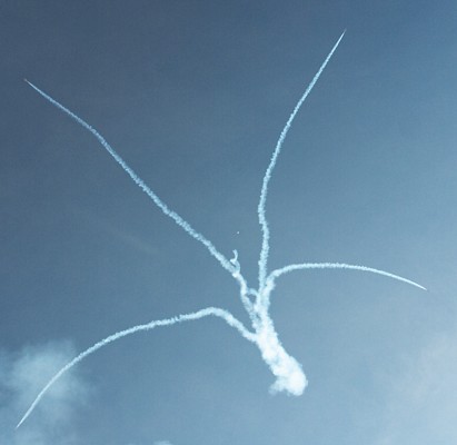 Note: They are flying a very loose right echelon formation, so planes to the left look much smaller than they really are.