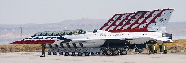 These photos were taken by me, Fred Bruenjes, at the 2003 Edwards Air Force Base Airshow, near Mojave Californa. Edwards is also known as the Air Force Flight Test Center, and is where virtually all new U.S. aircraft are first flown. It is located on dry lakebeds in the middle of the desert.