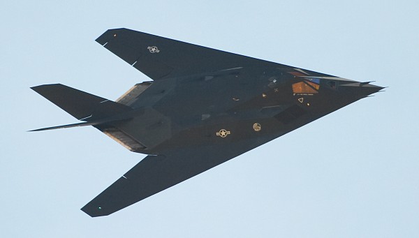 The F-117A Nighthawk Stealth Fighter takes a look at the crowd.