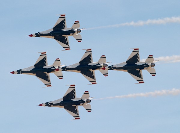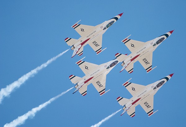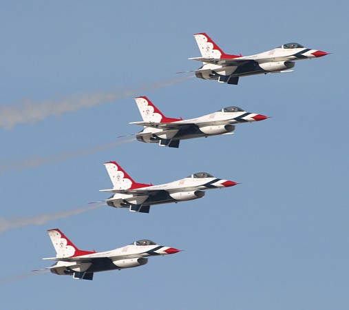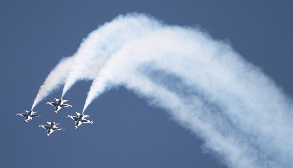 The finale is the Thunderbirds, a high performance jet team flying the F16. Only five of the seven planes flew.